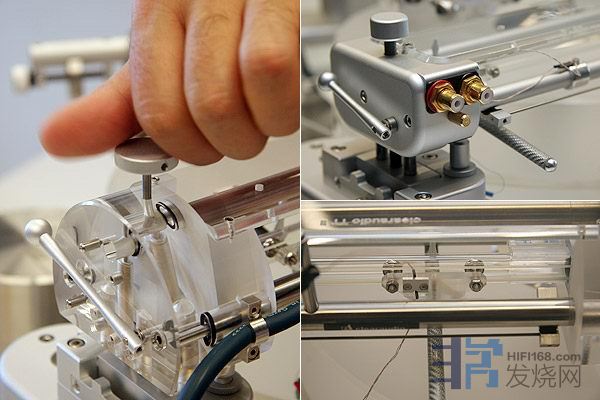 这根唱臂调校起来最麻烦的是臂管后面的唱头平衡与前面唱头方位、正切走线要同时配合调整,而且必须松开两个地方的螺丝,这就造成了调校的一个极大的困难,你想稍微扭实唱头方位的螺丝,调好的后面又走位了,反之亦然!说白了,调这根唱臂,除了眼力、技术、理解到位外,还需要天赋的运气,没有点运气你就是调到吐血也调不好。