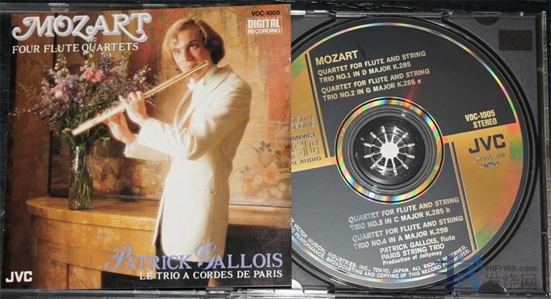 [font=新宋体]94、JVC:Patrick Gallois(帕特里克.加洛斯)在日本JVC时期发行的黄金长笛系列《莫扎特1、第1号K285 & 第2号K285a》,编号:VDC-1005,85年早期JVC钢字首版。基本完美如新。 120