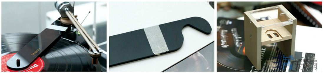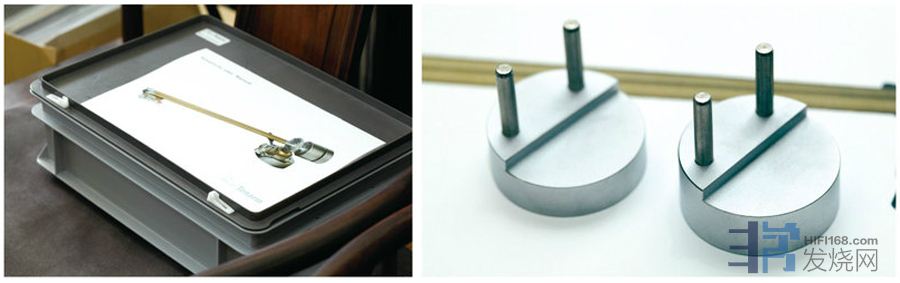 右:安装唱头则需要用到这个工具,它也是用阳极处理的铝合金制作的,精密度非常高。