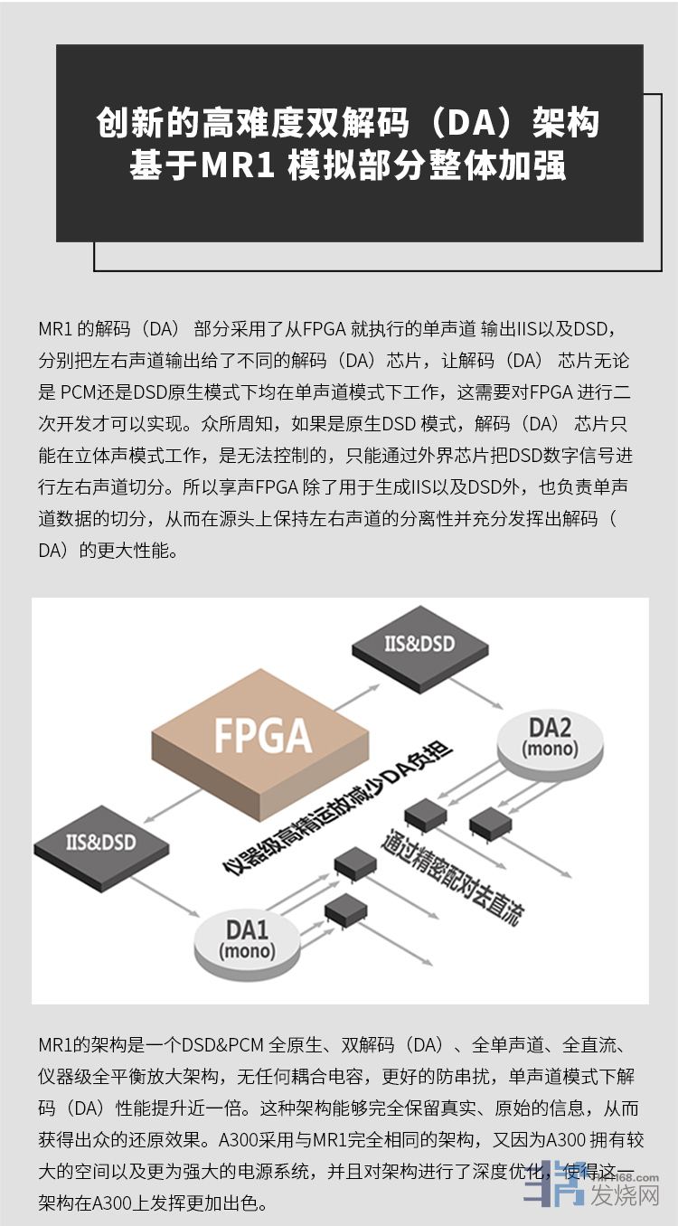 享声A300上DA上的方案,也是一定程度上参考了某顶级的 专业DA的解码器方案,而数字IIS&DSD 以及主时钟,由D300的架构完成~