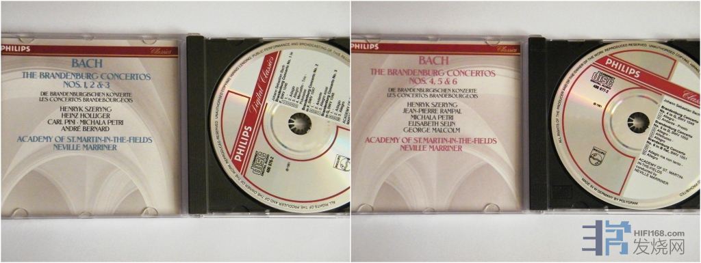 [font=仿宋_GB2312][size=5](9)巴赫勃兰登堡协奏曲1-6号,谢霖独奏,马里纳指挥圣马丁,CD1西德无字满银圈,几丝细痕,CD2西德PDO满银圈01版,近新,210[/size][/font]