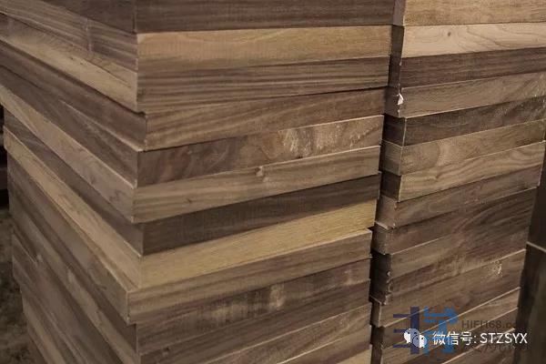 我们知道大多数Diapason产品都采用实木制造箱体,但天然生长的原木材料密度并不是很平均,时间久了可能会产生变形、龟裂的问题,所以大部分音箱制造者都使用人工MDF板,取其稳定不变质的优点。Diapason为什么坚持使用原木制作木箱?又怎么制作稳定又耐久的原木音箱?Diapason的老板Alessandro说,原木是“活着”的材料,用原木制作音箱,能赋予Diapason音箱与众不同的音乐生命力。他以前学过作曲,经常在教堂里聆听现场音乐演奏。成为一名专业的录音师后,Alessandro发现一般的音箱很难再现音乐现场那种天然的和谐感和温暖感,听起来总是比较单薄呆板,缺乏感情色彩。于是就想通过使用原木做箱体,以天然材质来再现琴腔的共鸣,在发音方式上尽量接近真实的乐器,让声音更加真实、生动、亲切。所有Diapason产品设计时都要做仔细的微调,力求能再现出一种歌剧院的现场气氛。光有良好的数据但不动听的音箱是不完美的。原木箱体面对湿度与温度的改变,时间久了容易变形,Alessandro解释他们的应对方法。首先,他们选用高品质的Canaletto核桃木,它属于黑核桃木(Juglans nigra)的一种,主要生产在北美洲。一般核桃木(原产于中国)的颜色随着时间流逝会变淡,而黑核桃随着年代的久远却越来越深,光泽度越来越好,并且有着优雅美丽的纹理,被称为“美国木材中的贵族”,因为其重量、弹性和光滑的手感,是制作枪托不二的选择。根据黑核桃木产地不同(他们现在使用加拿大进口的材料),以及每一批木材不同的状况,大约需要一到二年的时间自然风干,令木材的性能进一步稳定。