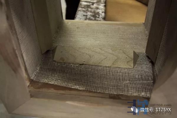 箱体内部粘上一层意大利传统贡多拉(凤尾船)制造中使用的亚麻布,并加装加强木杆以消除箱体谐振▲