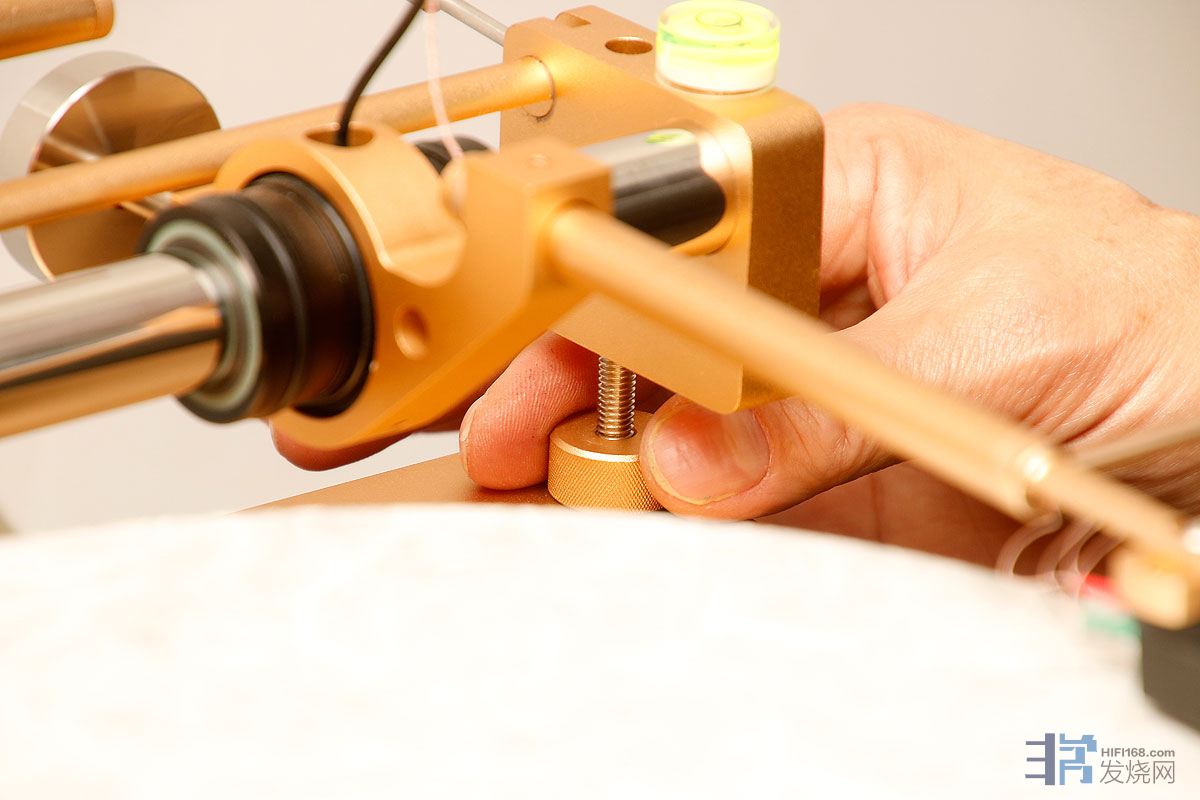 有个小窍门,调这个的时候,其实不需要水平珠,就看唱臂有没有移动就对了,向那边移,就调高那边;如果唱臂放在唱片开头、中间、结尾三个地方都不动,就大功告成。