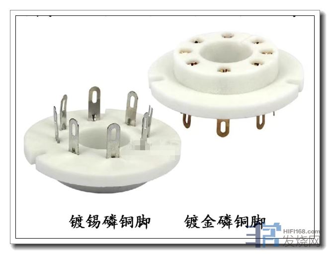 FU50是不规则大8脚,因此陶瓷管座也是8个金属夹片;而5Z9P只只需用到4个引脚,能省出来4个金属夹片。