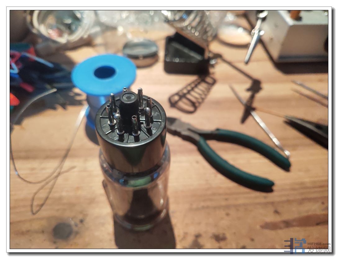 这几个簧片是从之前6P12P管座上闲置引脚上拆下来的,用1平方单支粗铜线焊上。