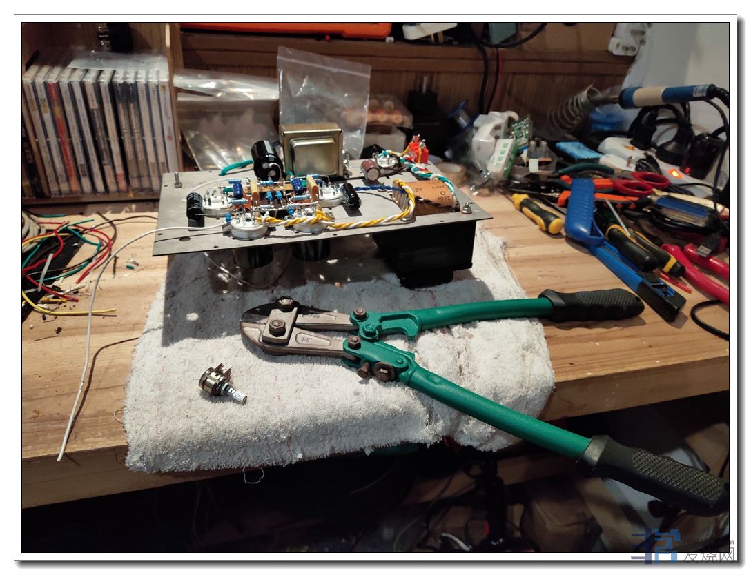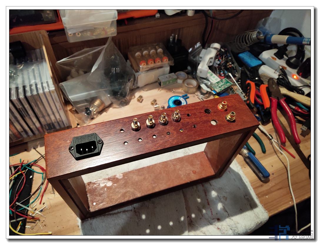 电位器后,就是装箱。不过装箱前,还要做做木工。