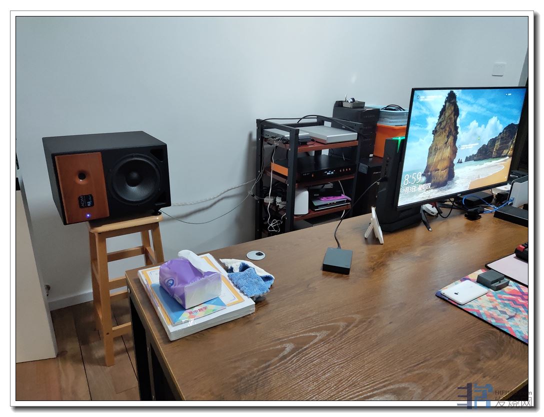 同时,细心朋友估计已经看到,原来背墙那一堆声学材料,经过调整,全部撤走了--这也是机主最大的愿望之一,之前右上角是房门,原先放置的低频陷阱一直严重阻碍开门及出入,想搬走很久了。
