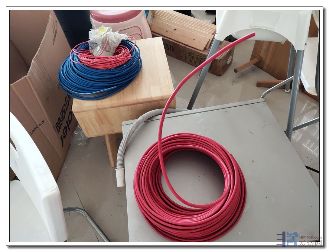 电源及信号线放一边墙角了,音箱线则难拆下来,暂时变成土炮线的支架了。