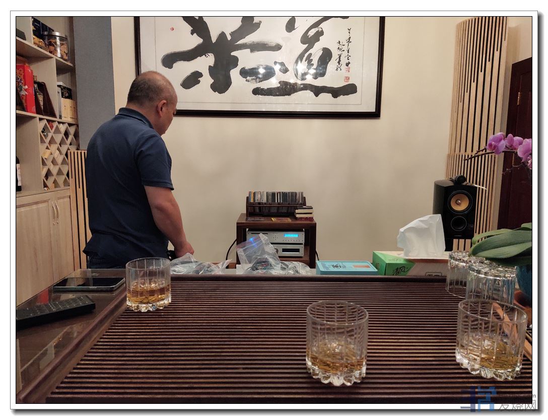 这套器材,在这个约30平方的听音环境里,出来的声音硬、乱、烦躁,令他难以接受,才多次叫我进来帮忙。