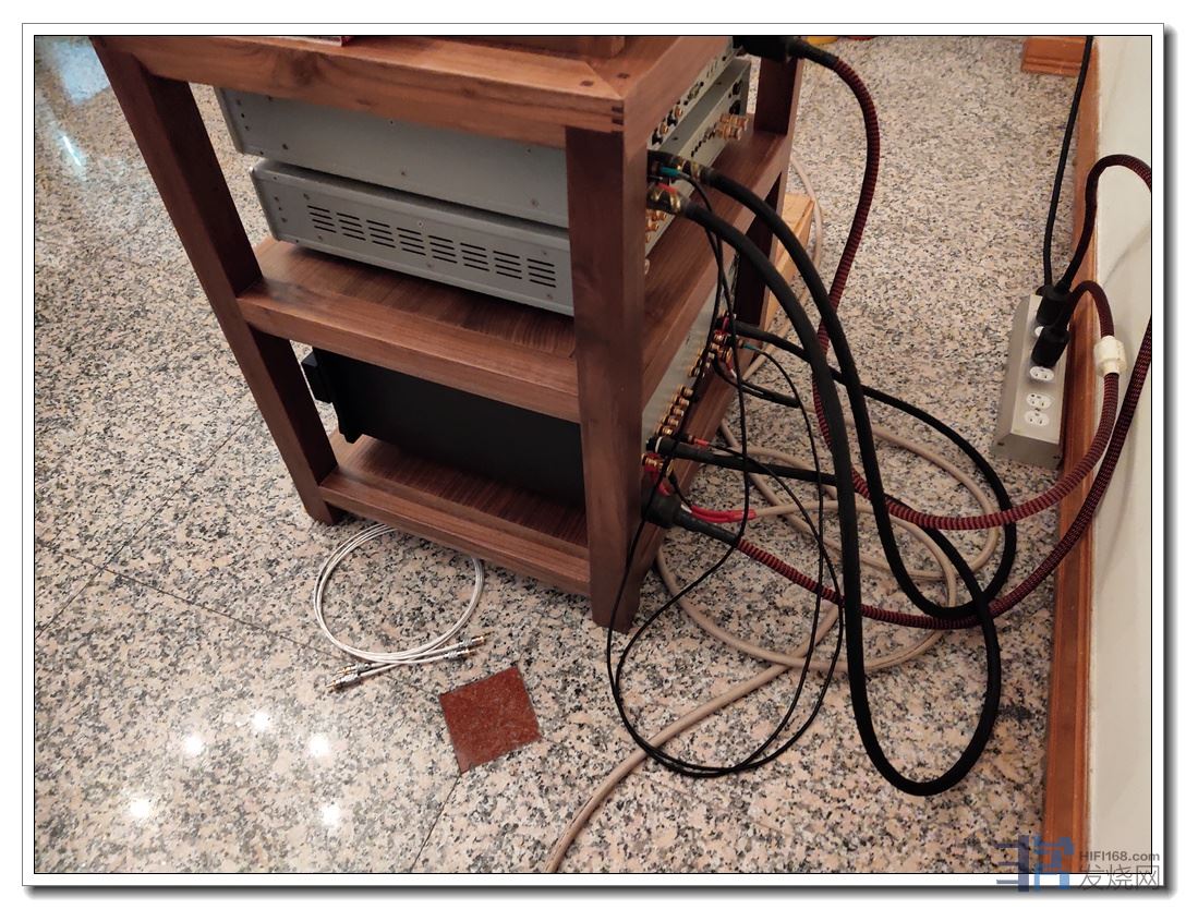 摆位及线材到位后,整套系统脱胎换骨。线材,电源线部分其实我只带了3副,不同风格,想着适合一副给他就算了。没想到插上后一听,全部留下了。严格来说还不算够用--墙插到排插应该用2米更好,但只带了1.5米的。另外两副,若作细化搭配,还有提升空间。但带的就这么多点,都全部用上了,只能先这样了。