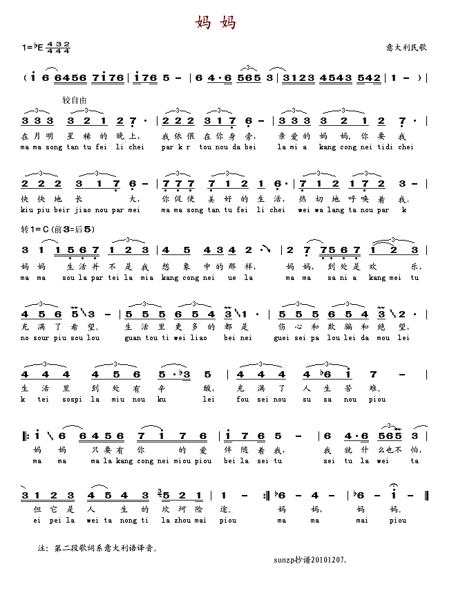 《妈妈》简谱:
