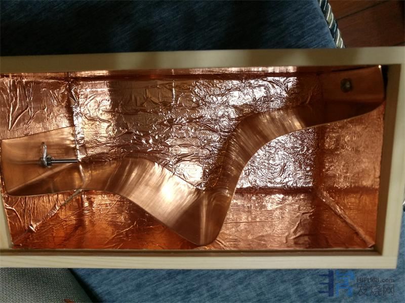 用紫铜板在盒子里固定,一头用螺丝把纯银线压接固定,不用焊接的方式是因为焊锡会影响原来系统的音质。另一头也用螺丝固定,这样避免紫铜板震动。