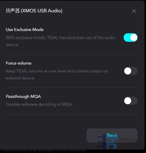 选择第一项打开Use Exclusive Mode 使用外部MQA解码即可: