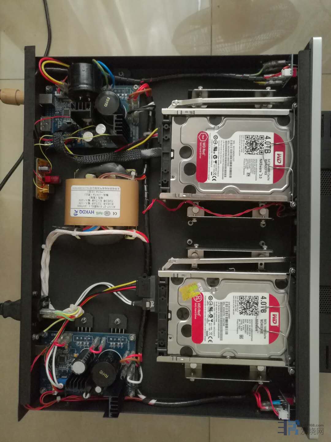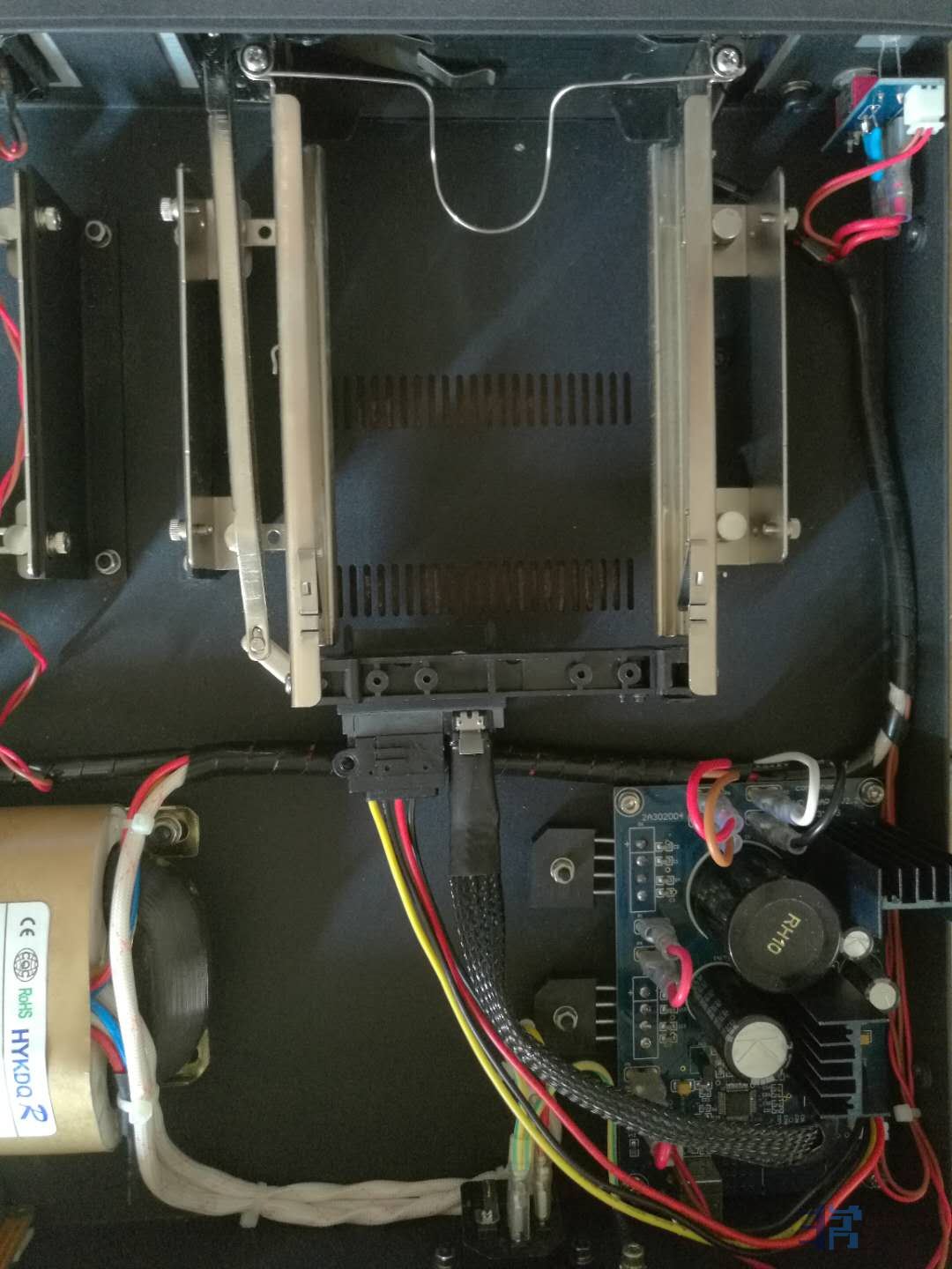 四.现在最大的败笔就是硬盘电源线。一定要定制7N铜镀银屏蔽电源线。12V和5V一定要隔离屏蔽。插头绕3M防辐射贴。