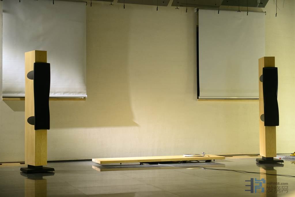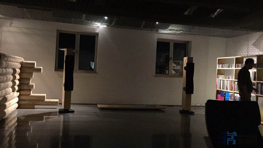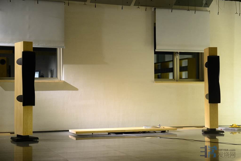 由于器材重组,线材重新配置。刘历程先生做设计出身,审美很关健,有点强迫症,不喜欢听音室里有杂乱的扩散板,多一件都不肯放,眼光是独到的。为了室内的美观,见不得一个环境里摆两件扩散板,有阻视觉眼晴。故把一个月前富盛音响峰哥来调音时摆位的角度打乱了,把峰哥安放在第一反射点的扩散板拆掉了,使得音场现在一彻都乱。这次刘历程先生采用原实木头,做好防震装置,在环境左边一层一层地叠加起来,做第一反射点的扩散。新的实木头扩散,似根雕设计。声音全变了,要重新摆位。播放着熟悉的古典音乐来调节。我和信洪波老师,刘历程先生三人,花了整整一个早上时间。是一点点,一步步地实验重新摆位。信洪波老师早年曾多次在现场演奏厅摆乐器,对乐器声部定位非常了解,信洪波老师对音乐深透了解,他的耳朵相当灵敏,当我扭转C4II音箱只一点小小的角度,他都能听到音场布局的变化,好灵敏的耳朵。我经过多次摆布,排除了干扰,最后DynaudioC4 II音箱两个扭转了相同一个角度。右边环境是CD架,我在第一反射点空格内补充一点书本,平平地摆放。稍为把右边音箱又调了一点点角度,听到好听,信洪波老师马上叫停,摆位成功了。