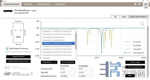 输入完成后让软件再次进行运算,这时候会有一组新的空间优化曲线。这是系统以第一阶段我们所设定"最理想"音箱位置为声音参考基准所衍伸出来的音箱"实际位置"的声音调整,系统会提供非常接近最理想音箱位置的声音效果给实际位置的摆放状态,而这也是LINN Space Optimisation最核心的功能,以此解决空间与音箱摆放上最大的困难与妥协。在众多品牌的空间优化系统和器材中,这是LINN独家拥有的特殊功能,而且非常实用。
