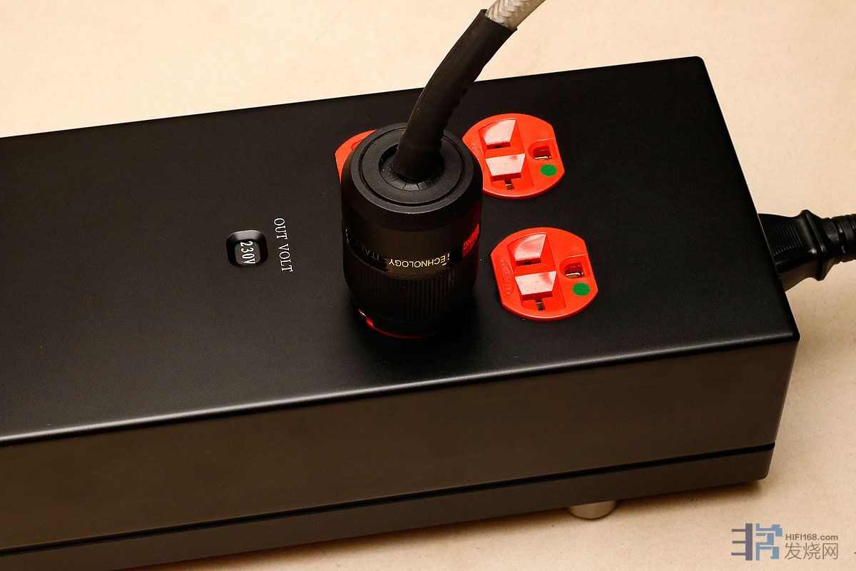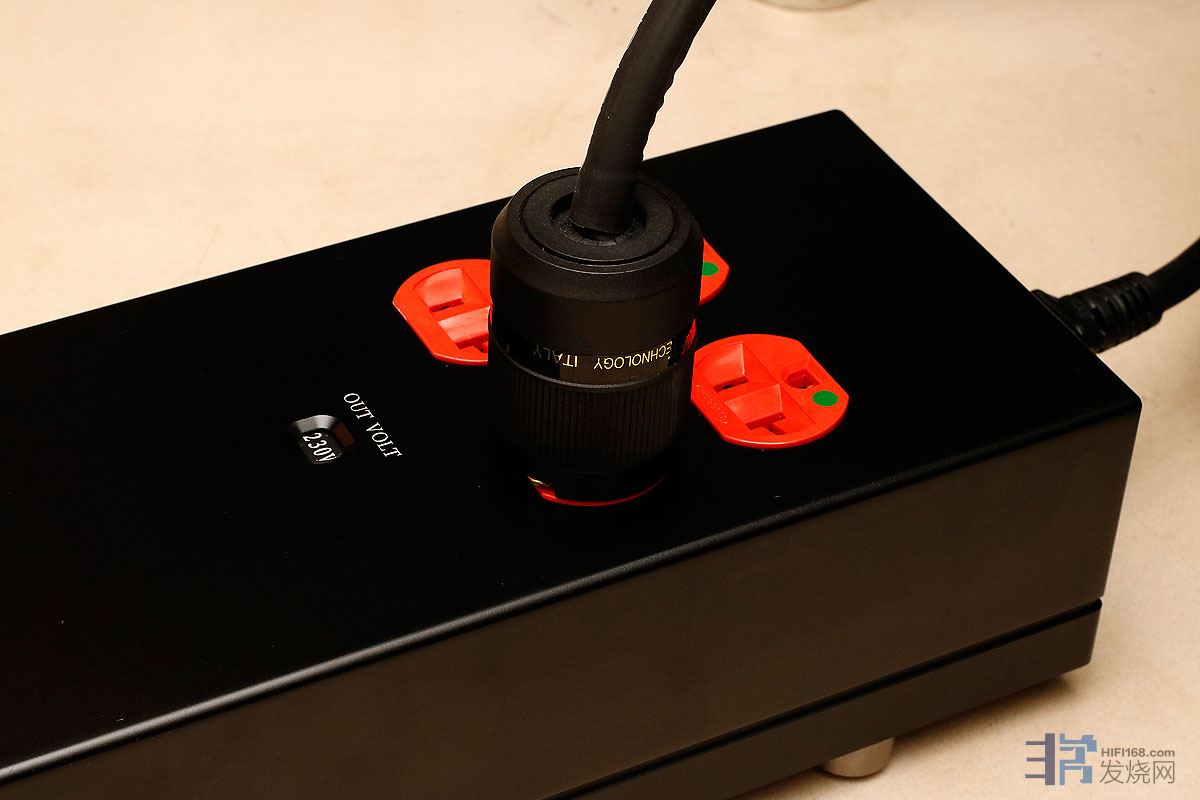 接上E9后,唱放的声音马上更凝聚了,能量感一下子上来了,声音更加生龙活虎。E9一共有4个输出,效果略更明显的是靠近面板的两个,所以,如果插不满,建议插前面两个;或者重要的设备插前面2个插座。