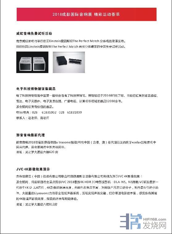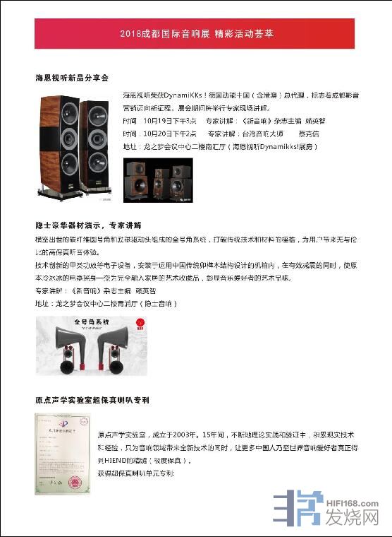 2018成都展豪华器材演示、精品音乐赏析、专家技术讲座将更加精彩,专门为展会订制的产品让来到成都展现场的爱好者受益。