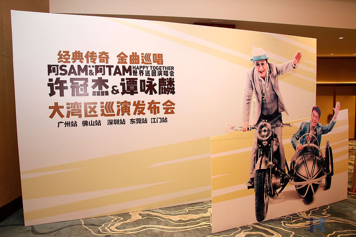 昨日(11月13日),香港殿堂级歌手许冠杰和谭咏麟在广州中国大酒店举办新闻发布会,宣布将在广州、佛山、深圳、江门和东莞五个城市上演巡回演唱会,其中广州的首唱将于12月15日于海心沙上演。