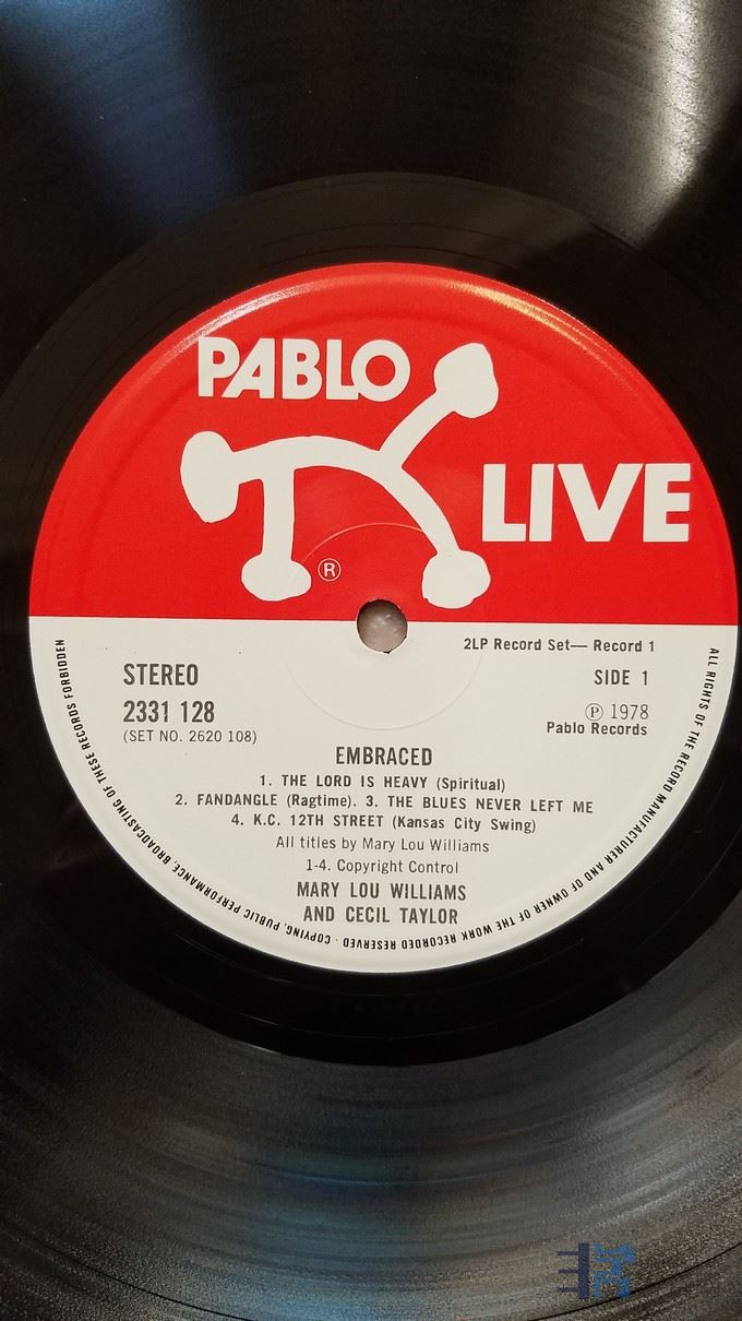 W2280-3 爵士名盘,爵士咆哮教母 Mary lou Williams、Cecil Taylor 钢琴《拥抱 Embraced》(2LP),英国 PABLO LIVE 立体声,2张唱片NM,480元.jpg