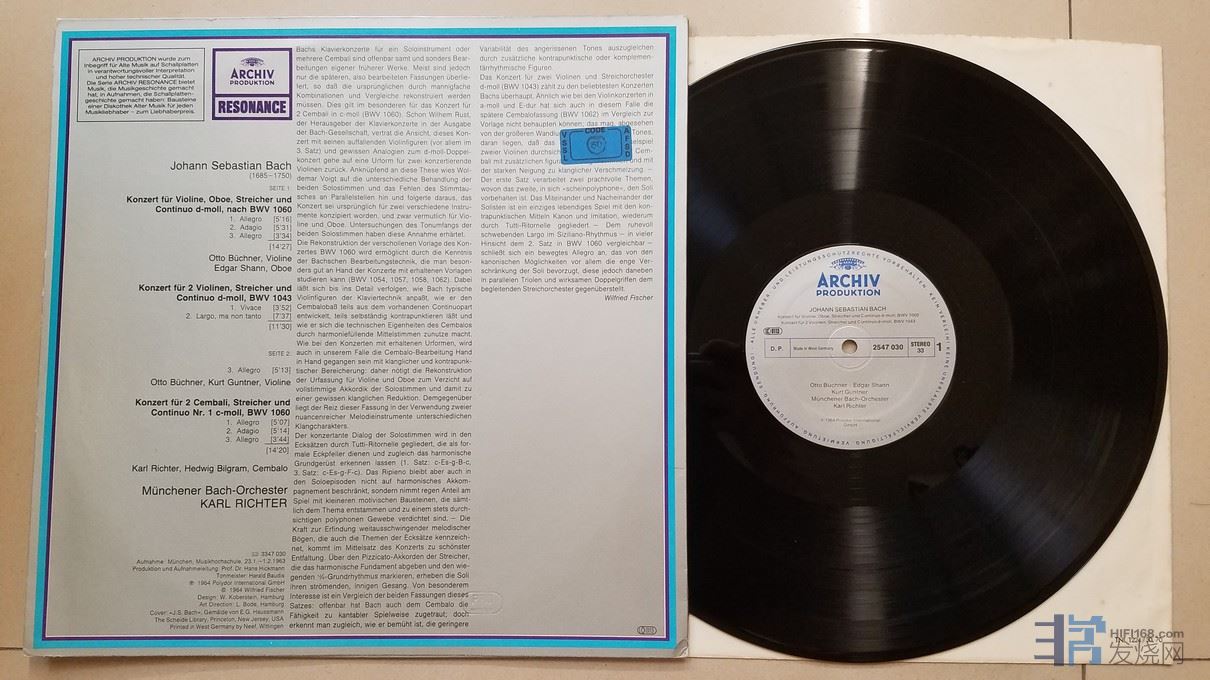 W2316-2 《巴赫 小提琴、双簧管、弦乐与通奏低音协奏曲,双小提琴、弦乐与通奏低音协奏曲,双羽管键琴、弦乐与通奏低音协奏曲》,西德ARCHIV立体声,唱片NM-,100元.jpg