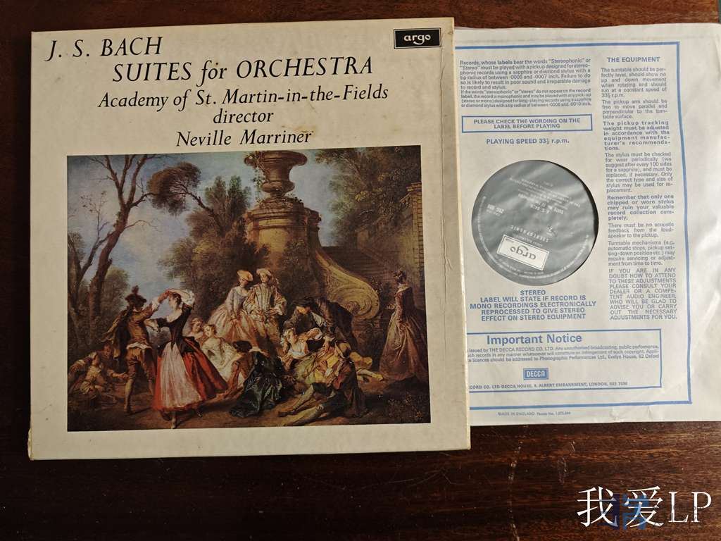 11001,经典名盘,巴赫《4首乐队组曲》,马列纳指挥圣马田乐团。Argo英国头版,盒装2LP,NM/NM-(如新!仅极个别强光下勉强可见极其虚弱擦痕),290
