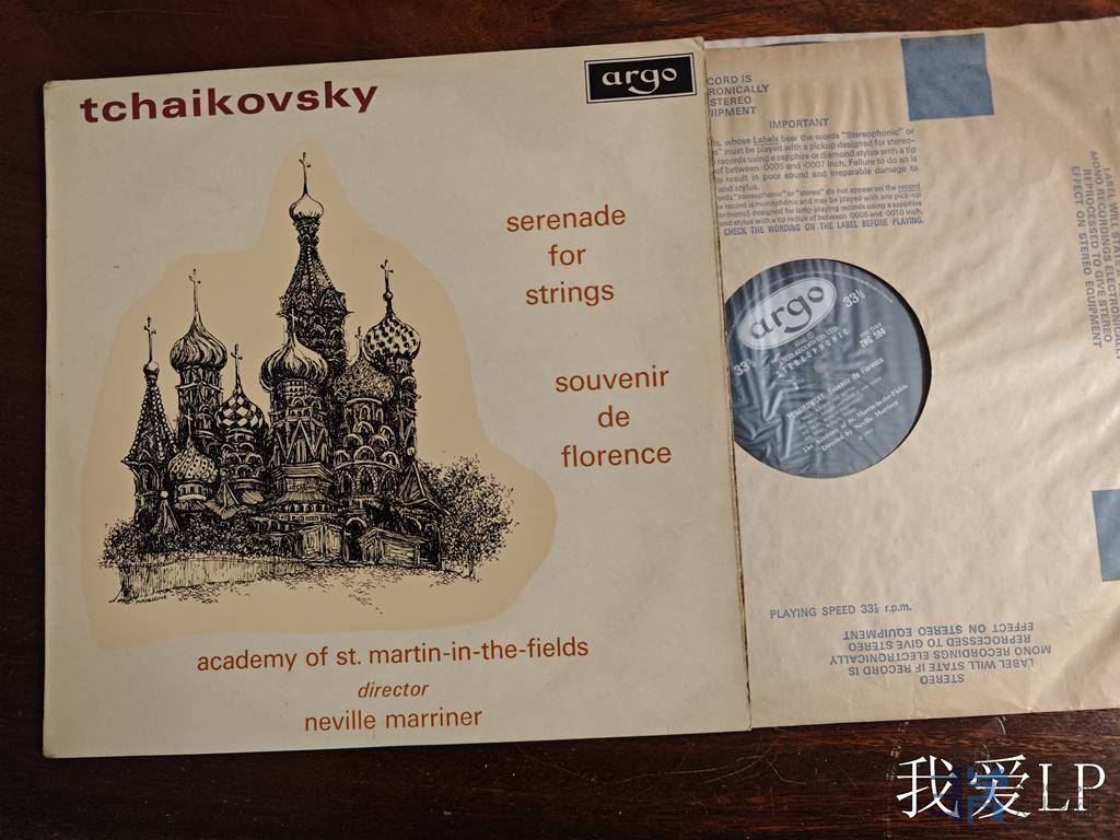 11002,柴可夫斯基《弦乐小夜曲》、《弗罗伦萨的回忆》,马泽尔指挥圣玛田乐队。Argo英国头版,NM,350