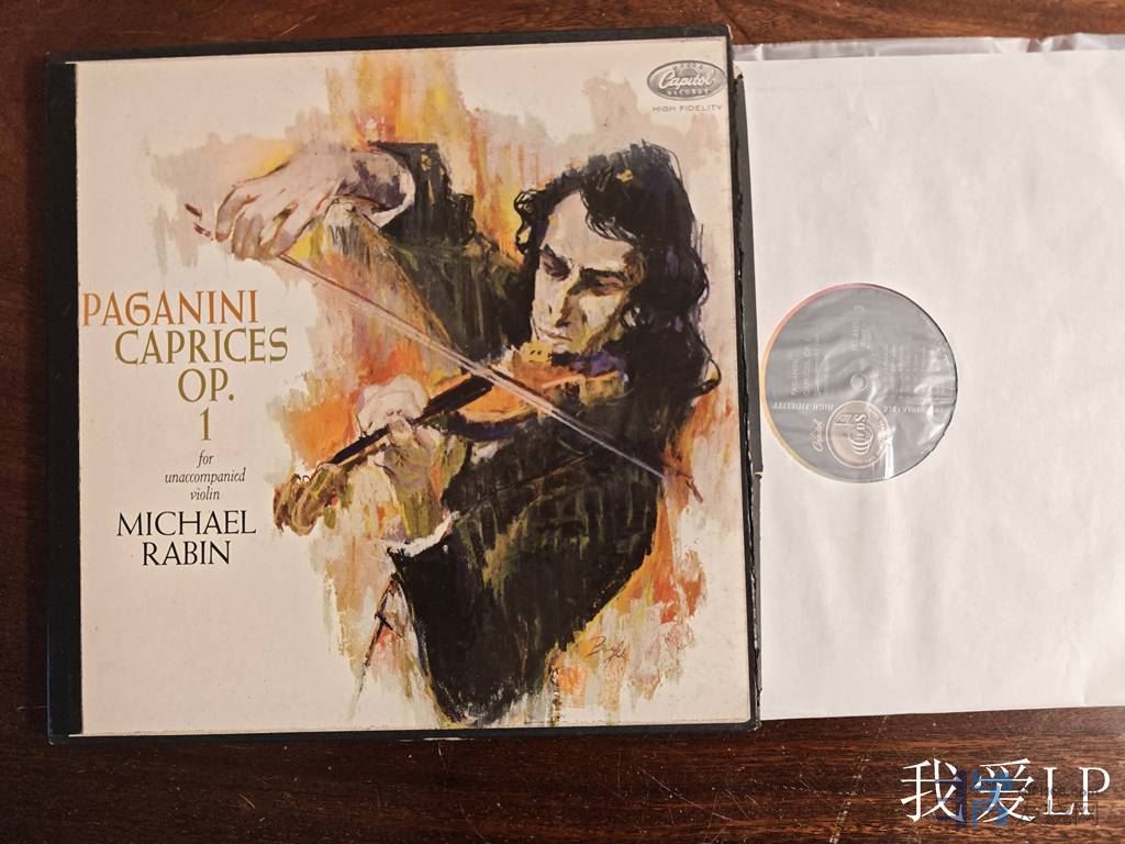 11004,经典名盘,帕格尼尼《24首随想曲》,拉宾小提琴的音色浓烈,技巧惊人,激昂与动力感无出其右!Capitol美国单声道头版,盒装2LP,EX++/NM-(第1张因为擦痕较明显所以EX++,但以单声道系统播放声音饱满安静,几乎完美!),1280