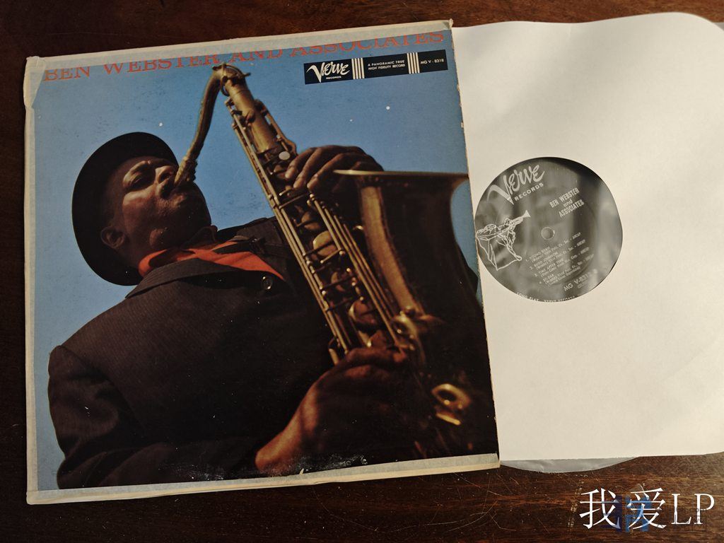 11100,爵士名盘《Ben Webster And Associates》,中音萨克斯大师本.韦伯斯特与萨克斯大师科尔曼.霍金斯、低音贝斯天王雷.布朗等合作于1959年在纽约的录音,抒情摇摆的旋律,韦伯斯特的演奏沉厚又柔软甜美、音色浓郁到极点。在旋律中吹奏长音的时候,他最拿手的就是加入鲜明悠长的气音,余韵浓浓不绝,口水花扑面而来!Verve美国单声道头版,VG+(盘面较多细微发丝痕,但以单声道系统播放声音安静饱满几乎完美!),450