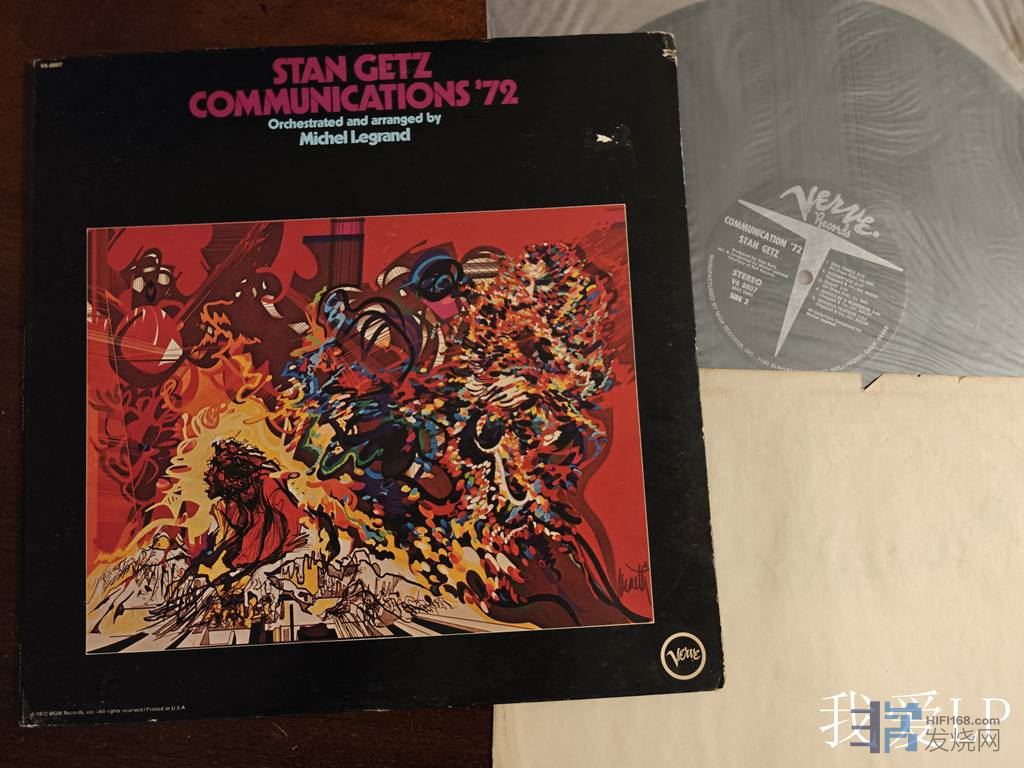 11103,爵士名盘《Communications'72》,中音色士风大师斯坦.盖茨与年少成名的法国爵士钢琴家米歇尔.勒格朗合作的专辑,是盖茨融合巴西桑巴节奏与美国流行音乐的代表作!Verve美国头版,NM-(如新!仅强光下勉强可见极其虚弱擦痕),280