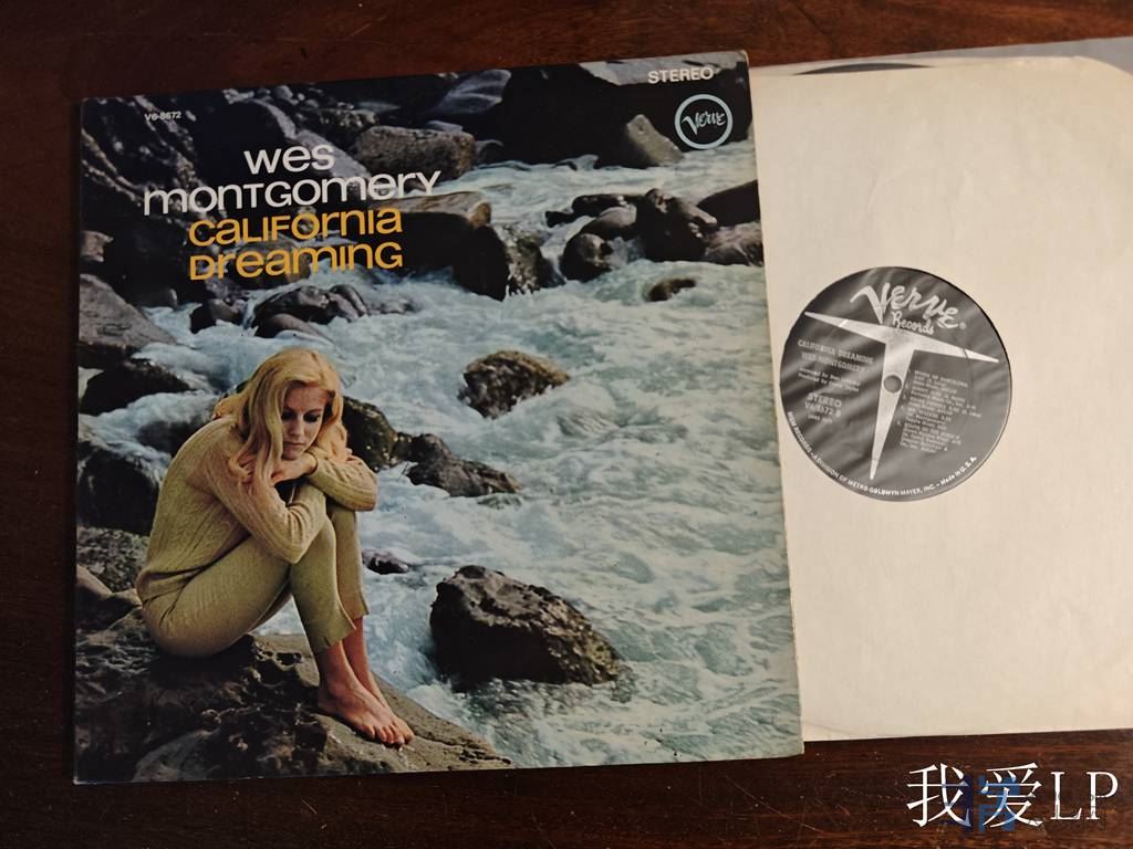 11104,经典爵士名盘《California Dreaming》,爵士吉他大师韦斯.蒙哥马利1966年发行,也是大师最著名的专辑,蒙哥马利在此专辑中采用其标志性的八度音技法演绎流行曲目,其轻快的节奏与温暖音色与加州自由精神形成跨时空呼应。由爵士界威尔金森—范.格尔德(Rudy Van Gelder)操刀录音。Verve美国折叠封套头版,有RVG刻码,NM-(仅全无手感德虚弱擦痕,播放优秀!),250