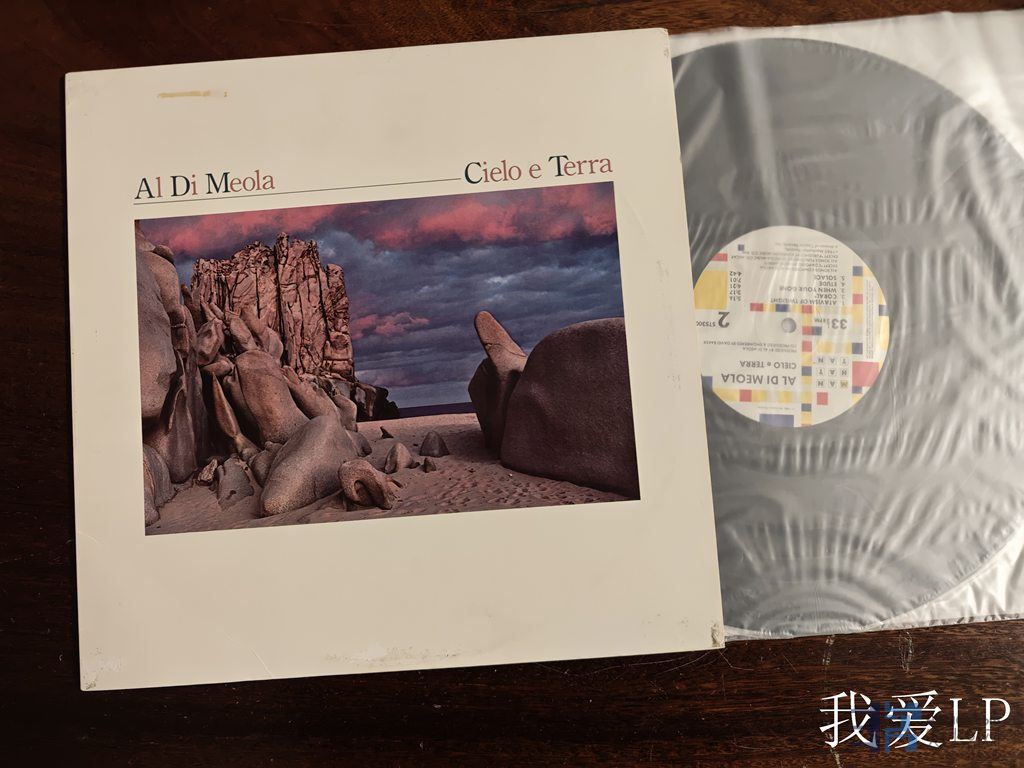 11112,发烧名盘《Cielo E Terra(天堂与地球)》,爵士吉他大师艾尔迪.米欧拉(Al Di Meola,与约翰.麦克劳林等合作《星期五旧金山之夜》1985年发行的著名专辑,米欧拉轻柔的吉他独奏加上打击乐和人声吟唱,让整张专辑都带着忧伤、孤寂的情绪。Manhattan美国头版,NM,238