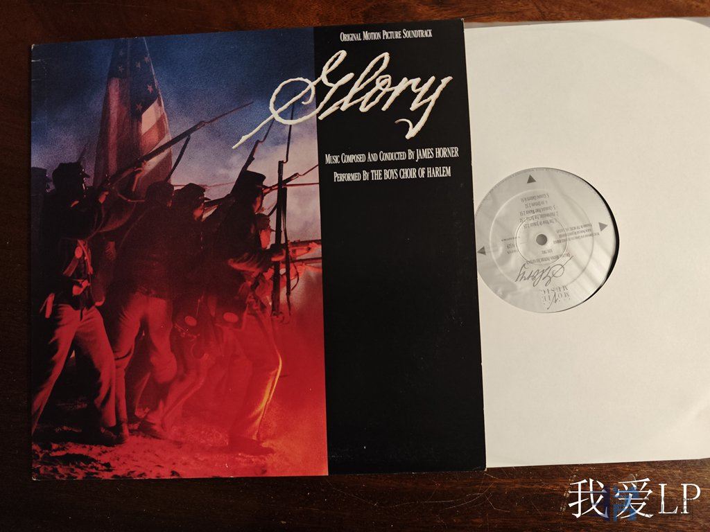 11119,TAS榜名盘《 Glory (光荣战役)》电影配乐原声大碟,已故著名电影音乐创作大师詹姆斯.霍纳(James Horner)经典作品,音效惊人(据说每年的CES大展Wilson Audio的老板便用这张唱片示范他家的喇叭)!维珍公司美国原版,NM/NM-(如新!仅B面强光下勉强可见虚弱擦痕),480