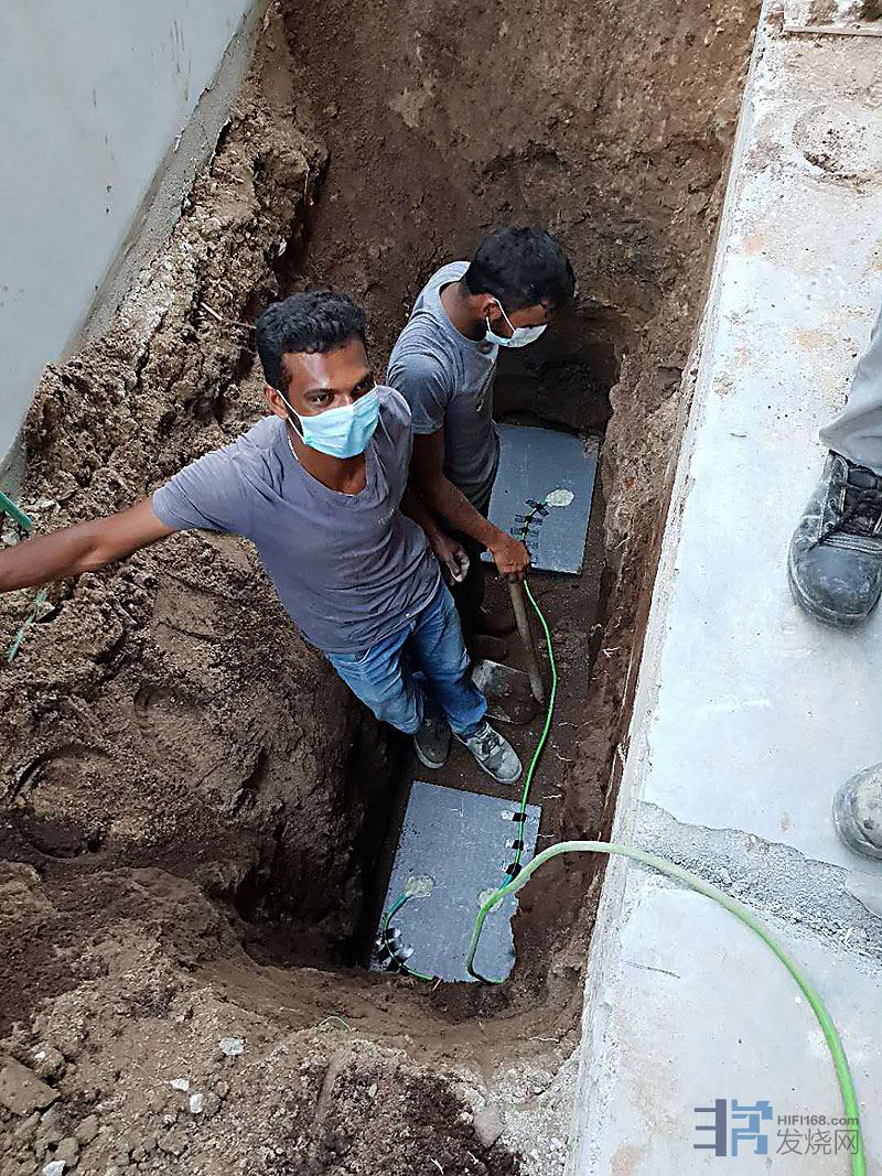 垫扬声器的是黑金沙石,厚达20公分,直接打穿地面藏进去,然后