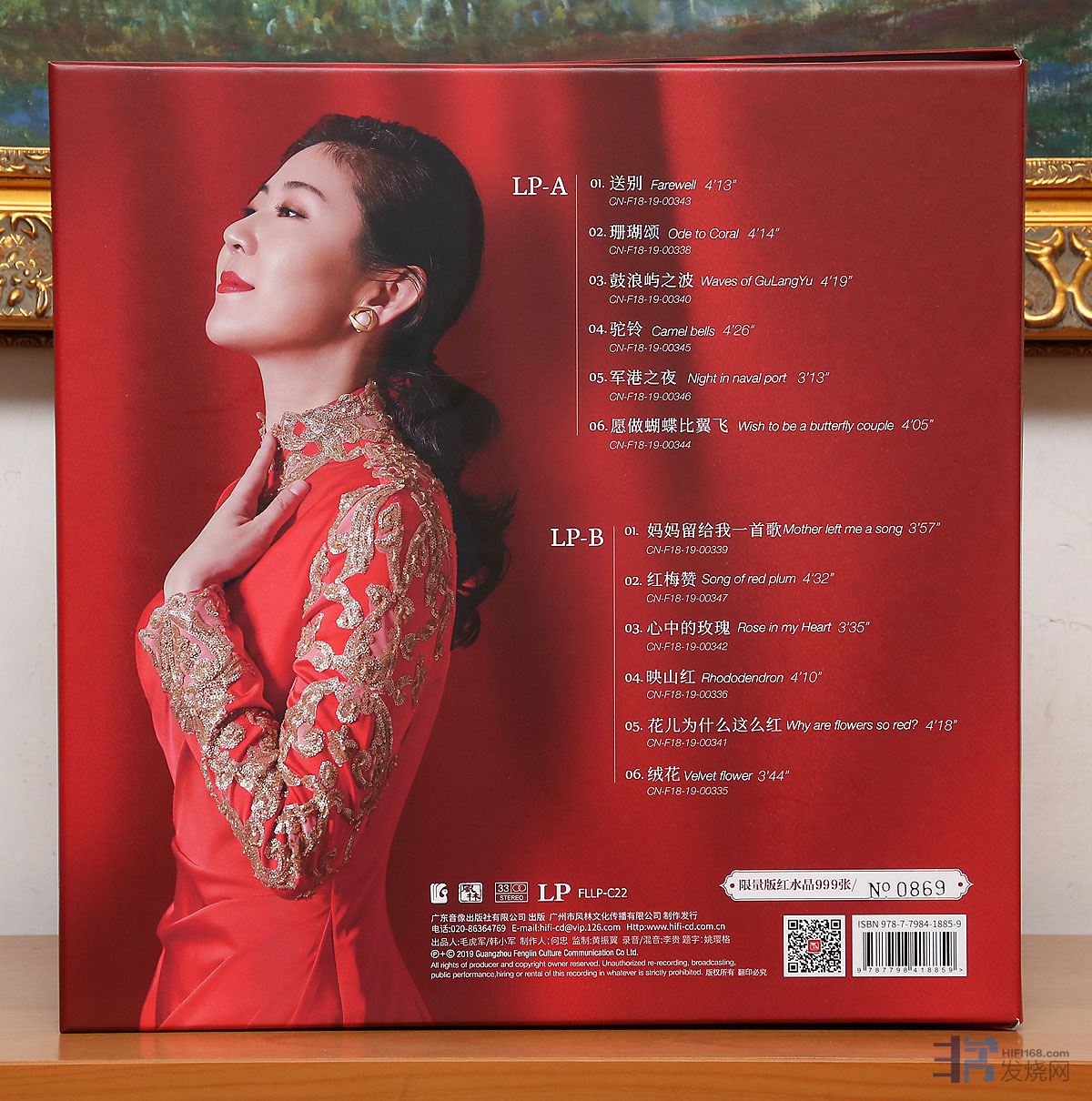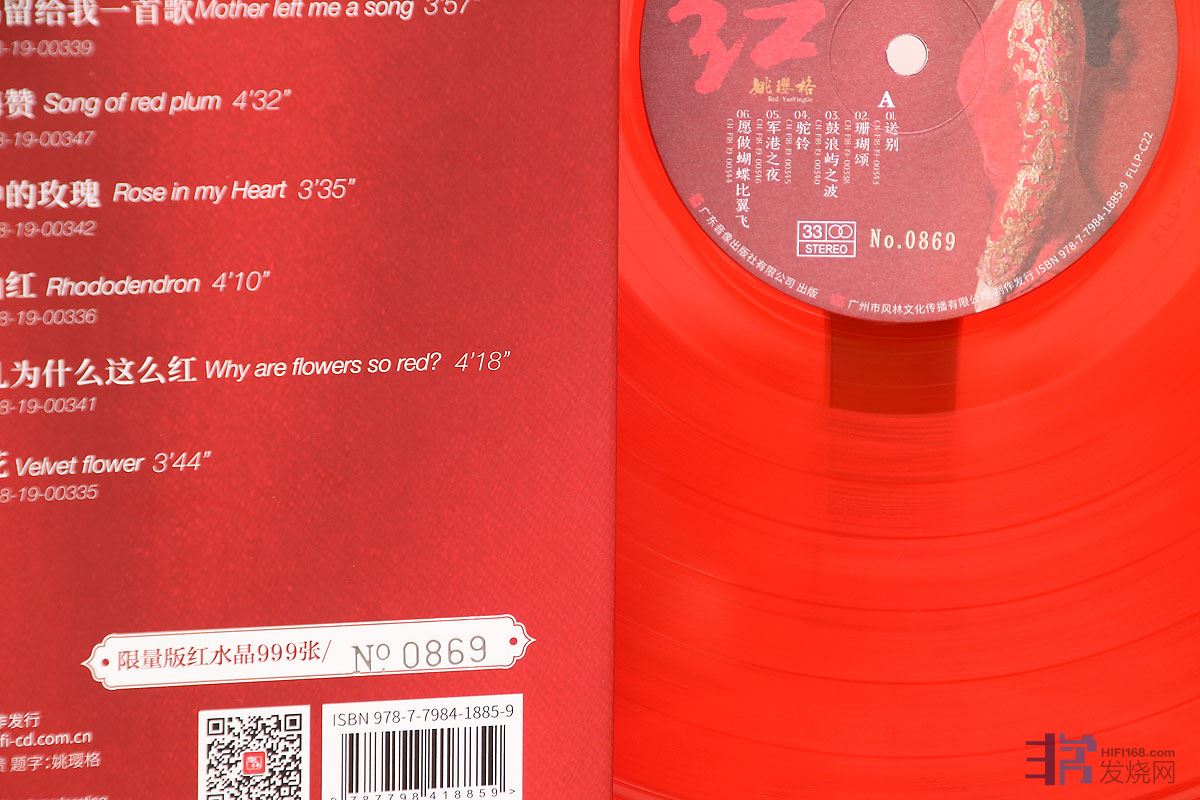 这是风林第一次采用“红水晶”作为载体制作LP黑胶唱片,内外全部都是“红”,限量999张,寓意:红红火火,长长久久!”