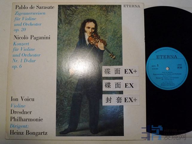 沃伊库演奏萨拉萨蒂“流浪者之歌”,帕格尼尼第一小提琴协奏曲,Eterna唱片,东德压片,碟面有一处擦痕,如图,经过的时候在左声道有很轻微的“哒”声,55块
