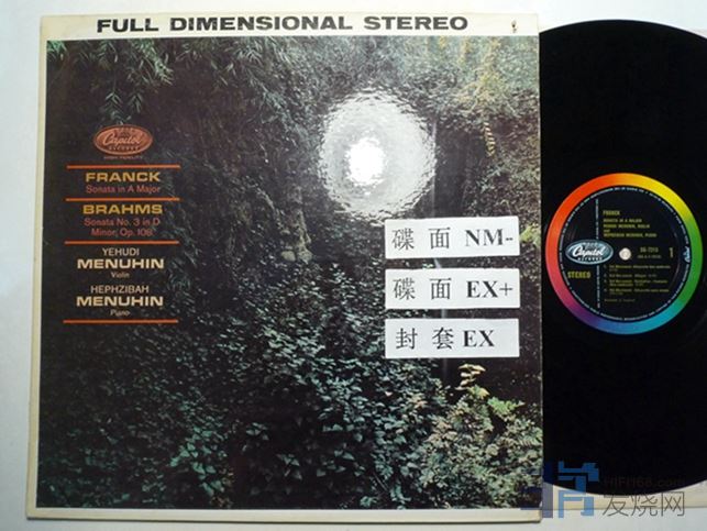梅纽因和她妹妹(伊丽莎白.梅纽因,钢琴家)演奏弗兰克小提琴奏鸣曲,勃拉姆斯第三小提琴奏鸣曲,Capitol唱片,加拿大压片,碟面有些表面痕迹,播放比较安静,95块