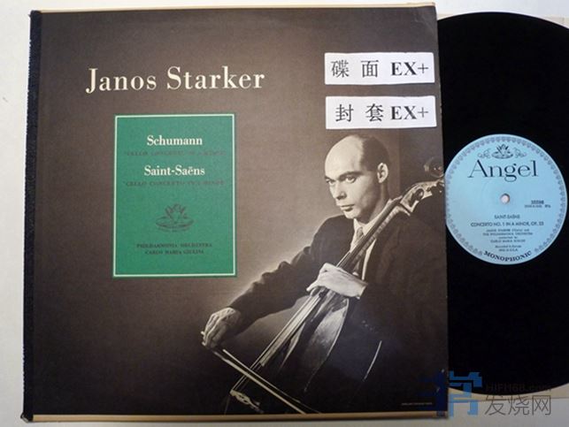 斯塔克演奏舒曼大提琴协奏曲Op129,圣桑大提琴协奏曲Op33,天使唱片,美国压片,单声道,总体比较安静,舒曼大协这一面快结束的时候,有两处小的划痕造成一些轻微滴答声,150块
