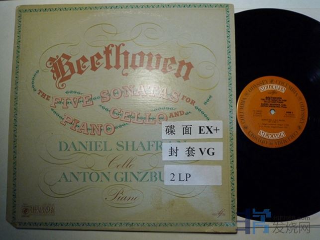 沙弗兰与金茨伯格演奏贝多芬大提琴奏鸣曲,对开双张,前苏联旋律唱片录音,CBS美国压片,除了第二面有点很轻微的底噪以外,其余都比较安静,580块