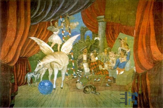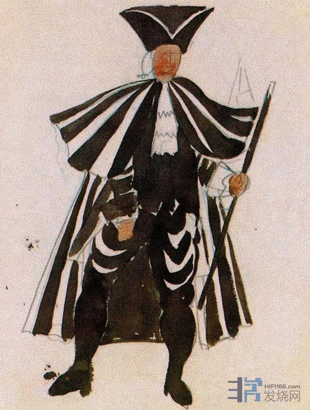 以下是首演时毕加索负责的舞台设计和服装设计: