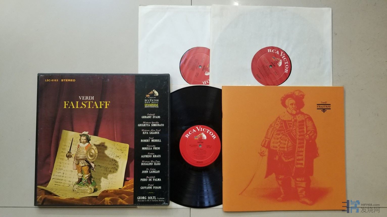 上榜歌剧名盘,索尔蒂 指挥RCA意大利歌剧院管弦乐团及合唱团,杰兰特·埃文斯、朱丽叶塔·西米奥纳多、艾娃·利瓦贝、罗伯特·梅里尔、米瑞拉·弗蕾妮、阿尔弗莱德·克劳斯、罗莎琳德·伊莱亚斯、约翰·莱尼根、皮耶罗-德帕尔马、乔凡尼·福亚尼 等演唱《威尔第 法斯塔夫》(3LP),美国RCA立体声,白狗厚盘,3张唱片NM-,已售