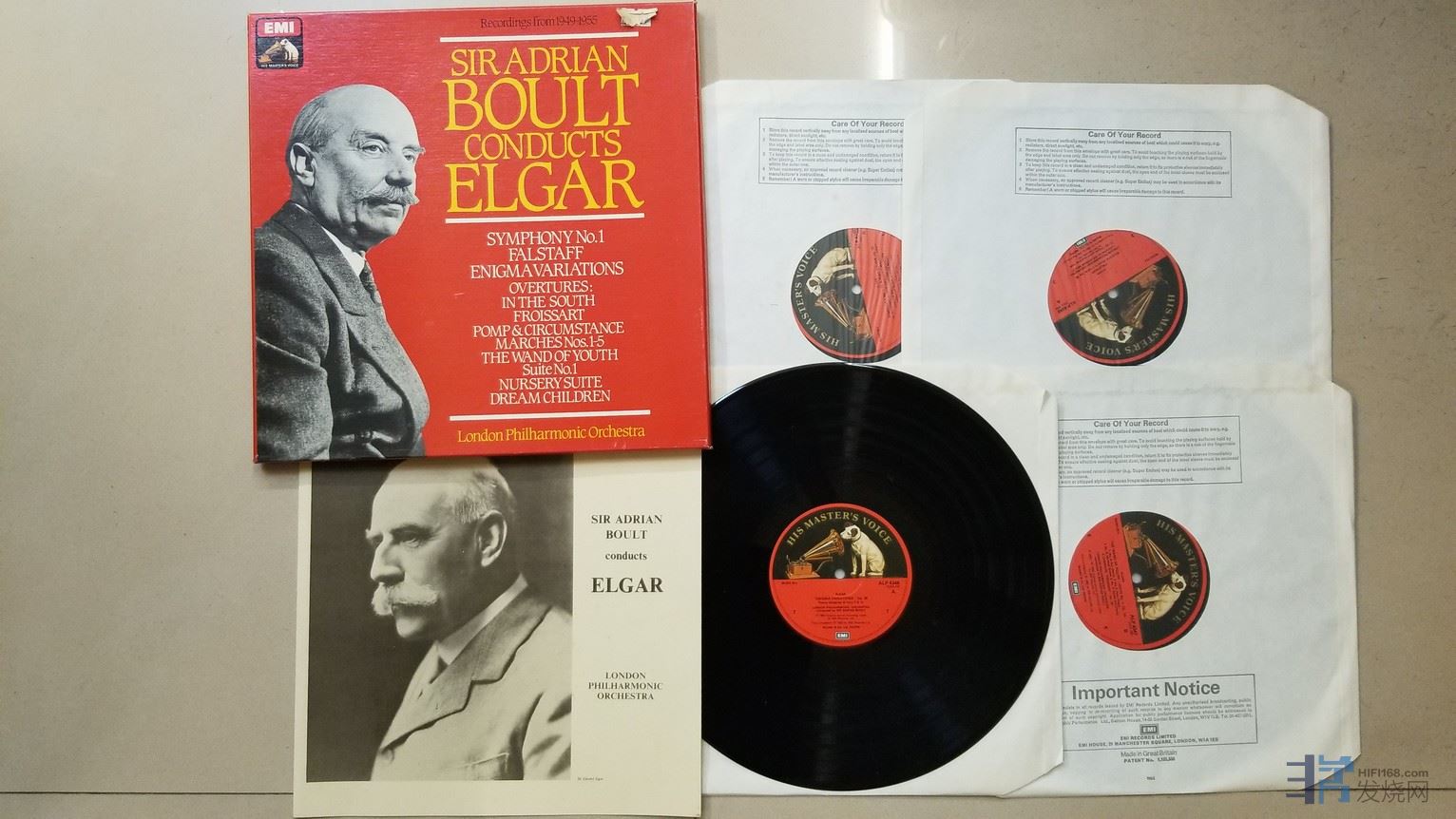 鲍尔特爵士 指挥伦敦爱乐乐团《艾尔加 作品集(录制于1949-1955,第1交响曲、法斯塔夫、迷的变奏曲、威风堂堂进行曲 等名曲)》(4LP),英国EMI单声道,4张唱片NM-,180元