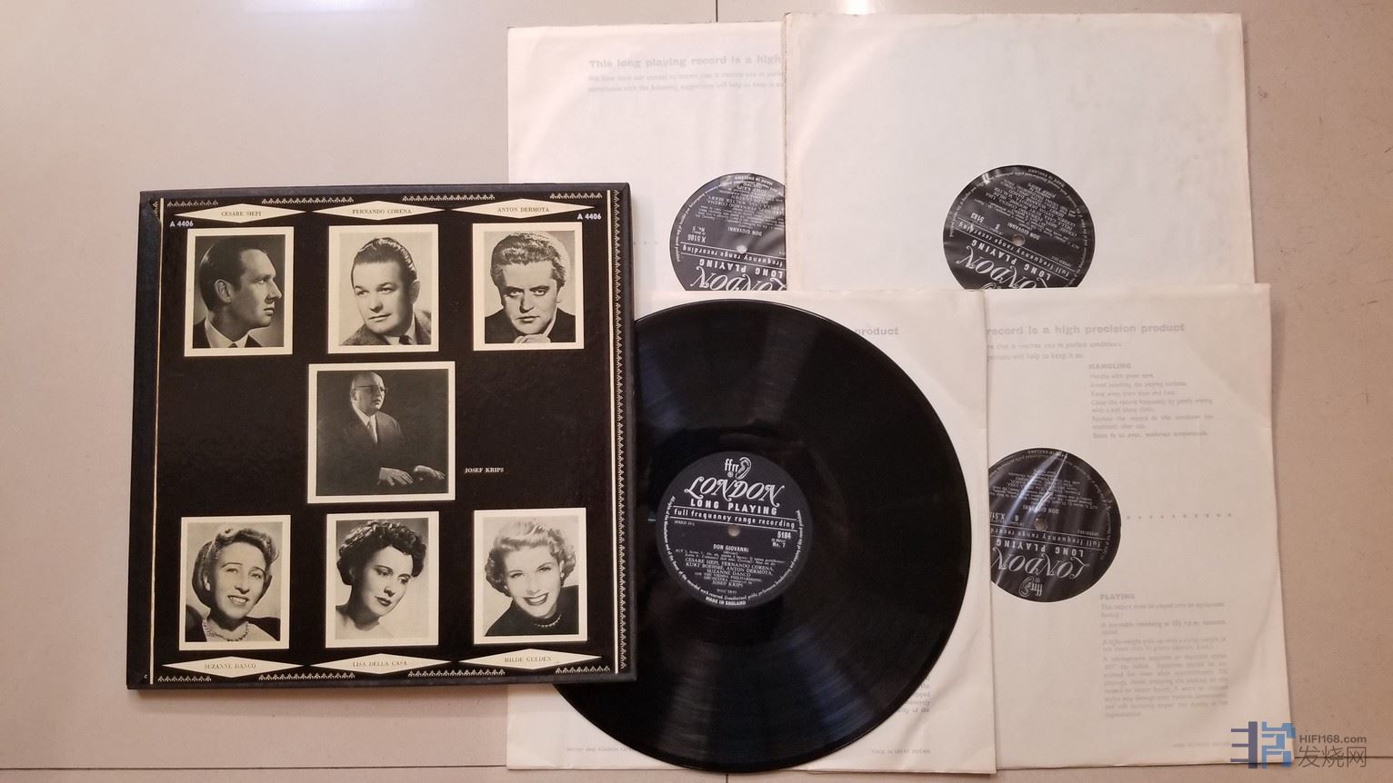 约瑟夫·克利普斯 指挥维也纳爱乐乐团,西皮、科雷纳、德莫塔、丹科、卡萨、古登 演唱《莫扎特 歌剧“唐璜”》(4LP),英国LONDON单声道,ffrr厚盘头版,4张唱片EX+,85元