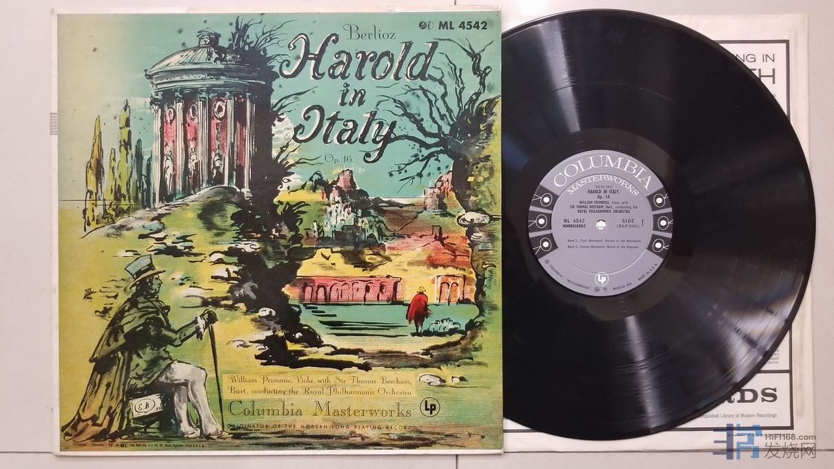 托马斯·比切姆爵士 指挥皇家爱乐乐团、威廉·普利姆罗斯 中提琴《柏辽兹 哈罗德在意大利》,美国哥伦比亚单声道,六眼厚盘头版,唱片EX,60元