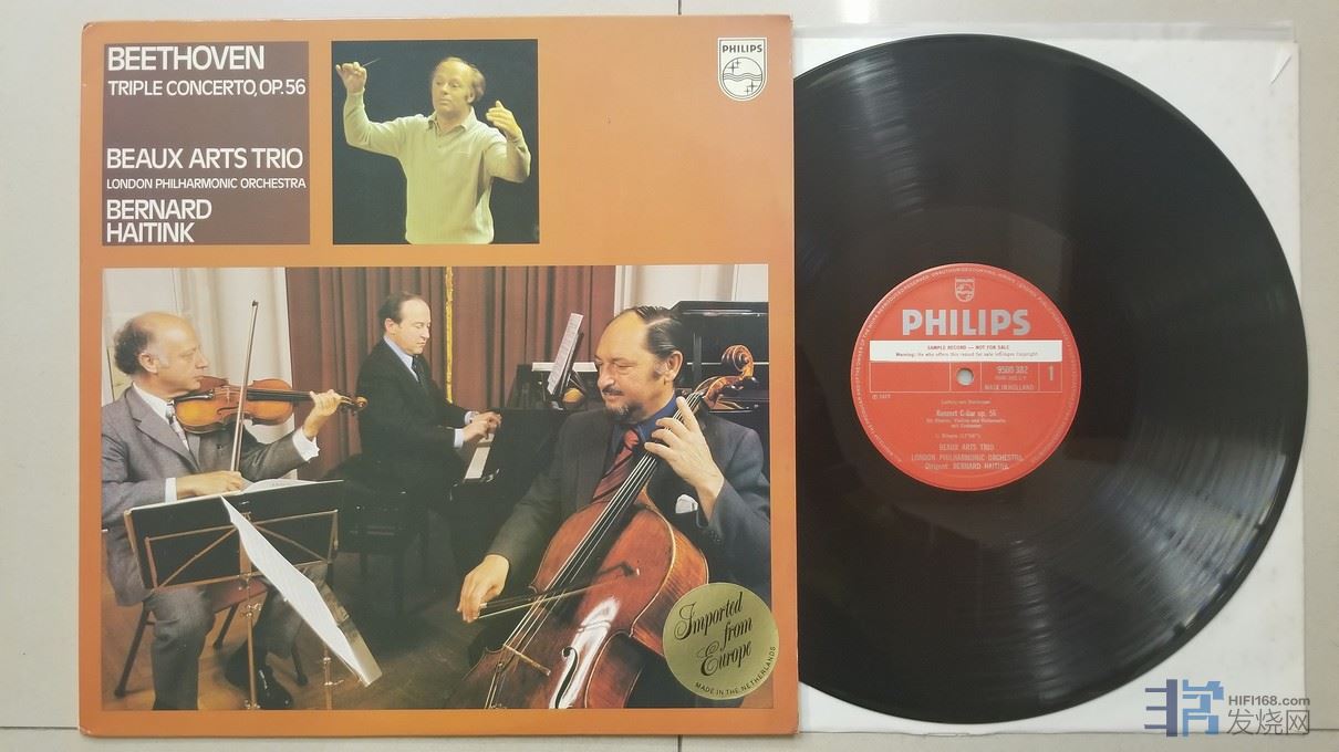 海汀克 指挥伦敦爱乐乐团,美艺三重奏组《贝多芬 三重协奏曲Op.56》,荷兰Philips立体声,红底银字,样板碟,唱片NM-,已售