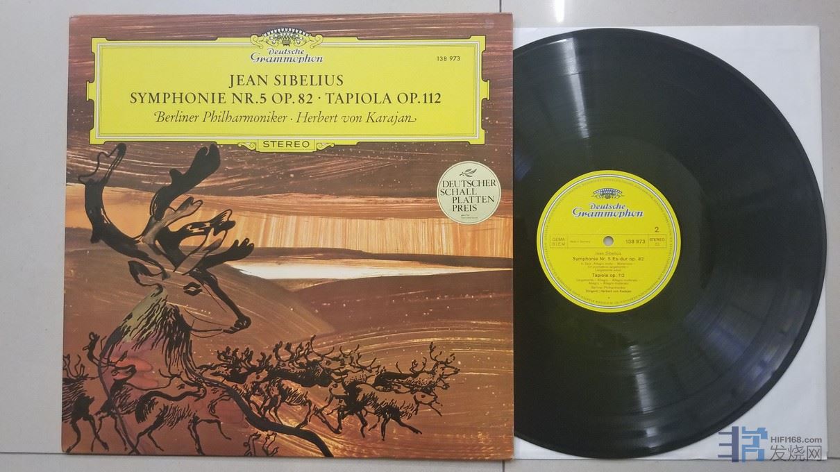 卡拉扬 指挥柏林爱乐乐团《西贝柳斯 第5交响曲、塔皮奥拉》,德国DG立体声,唱片NM-,60元