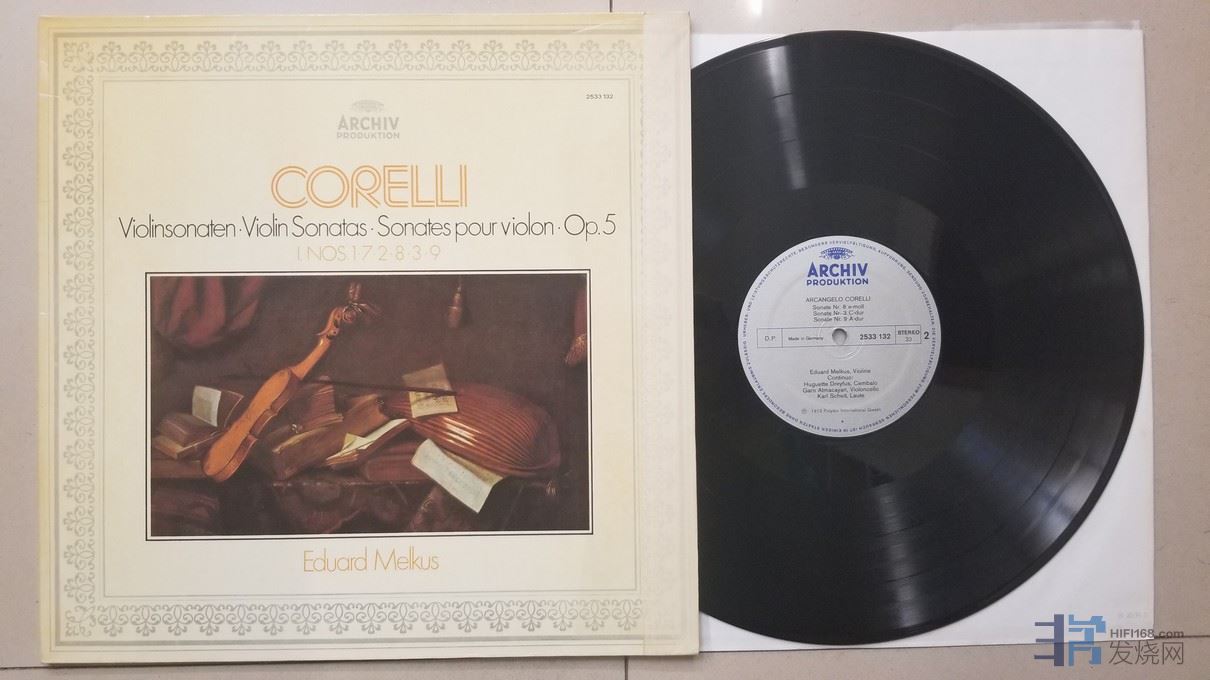 上榜名盘,德华·梅尔科斯 小提琴、德赖弗斯 大键琴、加罗·阿特马卡扬 大提琴、卡尔·谢特 鲁特琴《阿尔坎格罗·科莱里 小提琴奏鸣曲作品》,德国ARCHIV立体声,唱片NM-,150元