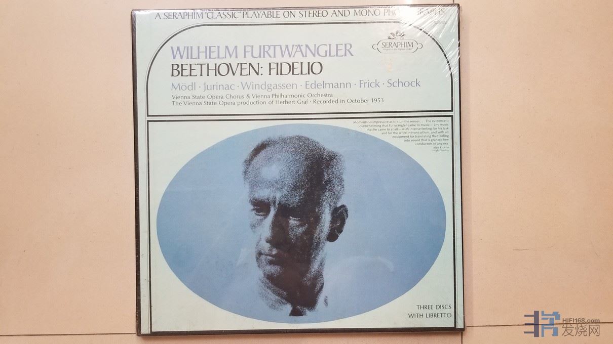 富特文格勒 指挥维也纳歌剧院管弦乐团及合唱团,莫代尔、朱丽娜、温德加森、埃德尔曼、弗里克、朔克 演唱《贝多芬 歌剧“费德里奥”》(3LP),美国SERAPHIM单声道,3张唱片原厂老版本未开封,90元