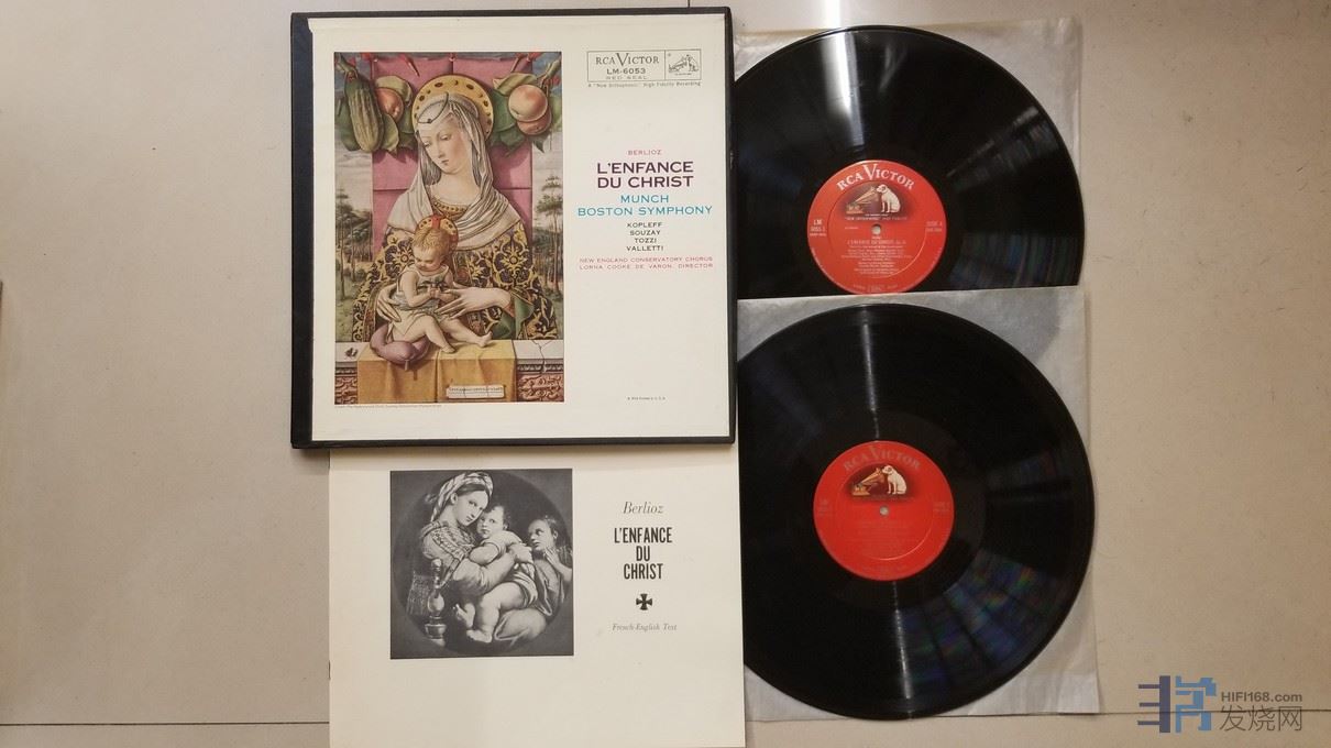 明希 指挥波士顿交响乐团、新英格兰音乐学院合唱团,科普列夫、苏哉、托齐、瓦莱蒂 等演唱《柏辽兹 基督的童年》(2LP),美国RCA单声道,阴影狗厚盘头版,2张唱片NM-,99元